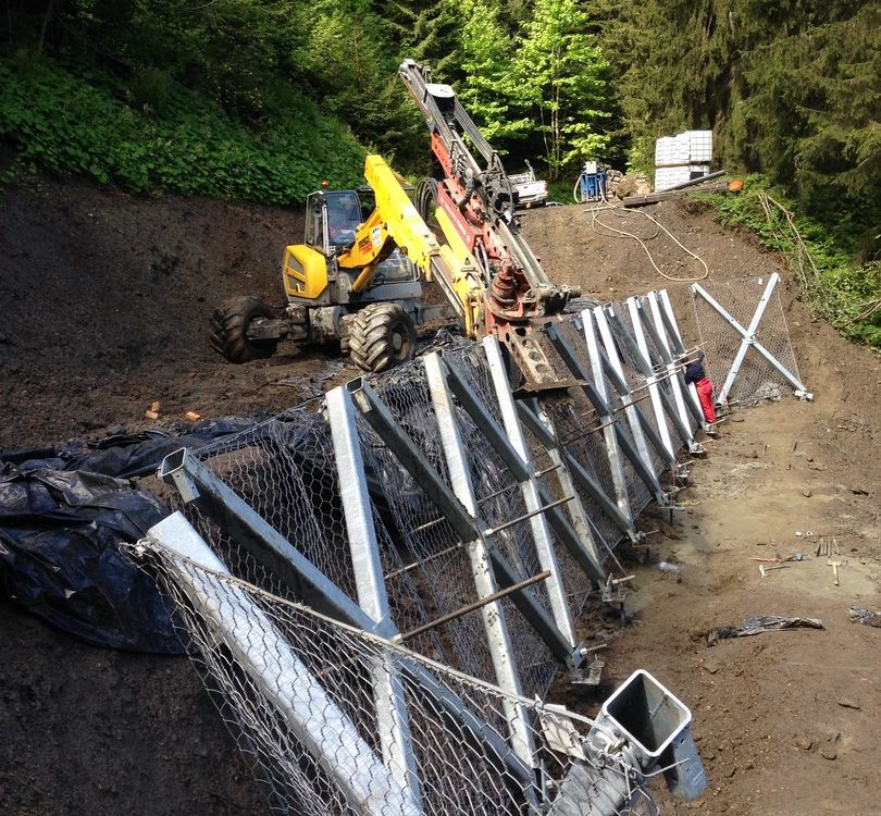 > Sécurisation des risques naturels : filets et écrans pare-pierres, grillage et emmaillotage, purge et minage, ancrage et forage.